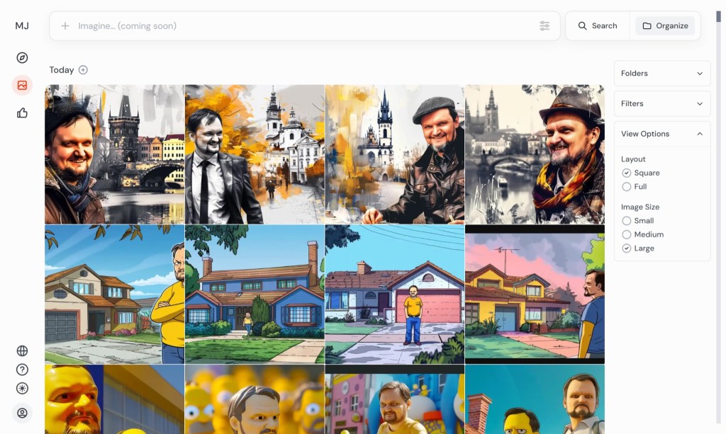 Možná vás překvapilo v úvodu článku video z webu Midjourney Alpha – to je budoucí podoba Midjourney, kdy už nebudete muset používat ten pitomej Discord. Plnohodnotně, včetně možnosti generovat fotky, je dostupný zatím jen uživatelům, kteří vygenerovali více než 1000 obrázků (a asi jen některým, já to nemám), nicméně můžete jej i tak použít. Je dostupný myslím všem platícím uživatelům na stránce https://www.midjourney.com/imagine a hodí se třeba k přehlednému zobrazení a hledání vašich výtvorů či pro inspiraci a hodnocení děl ostatních.